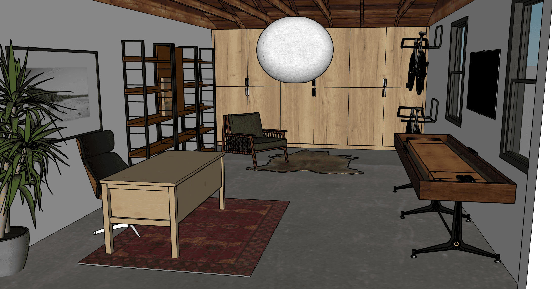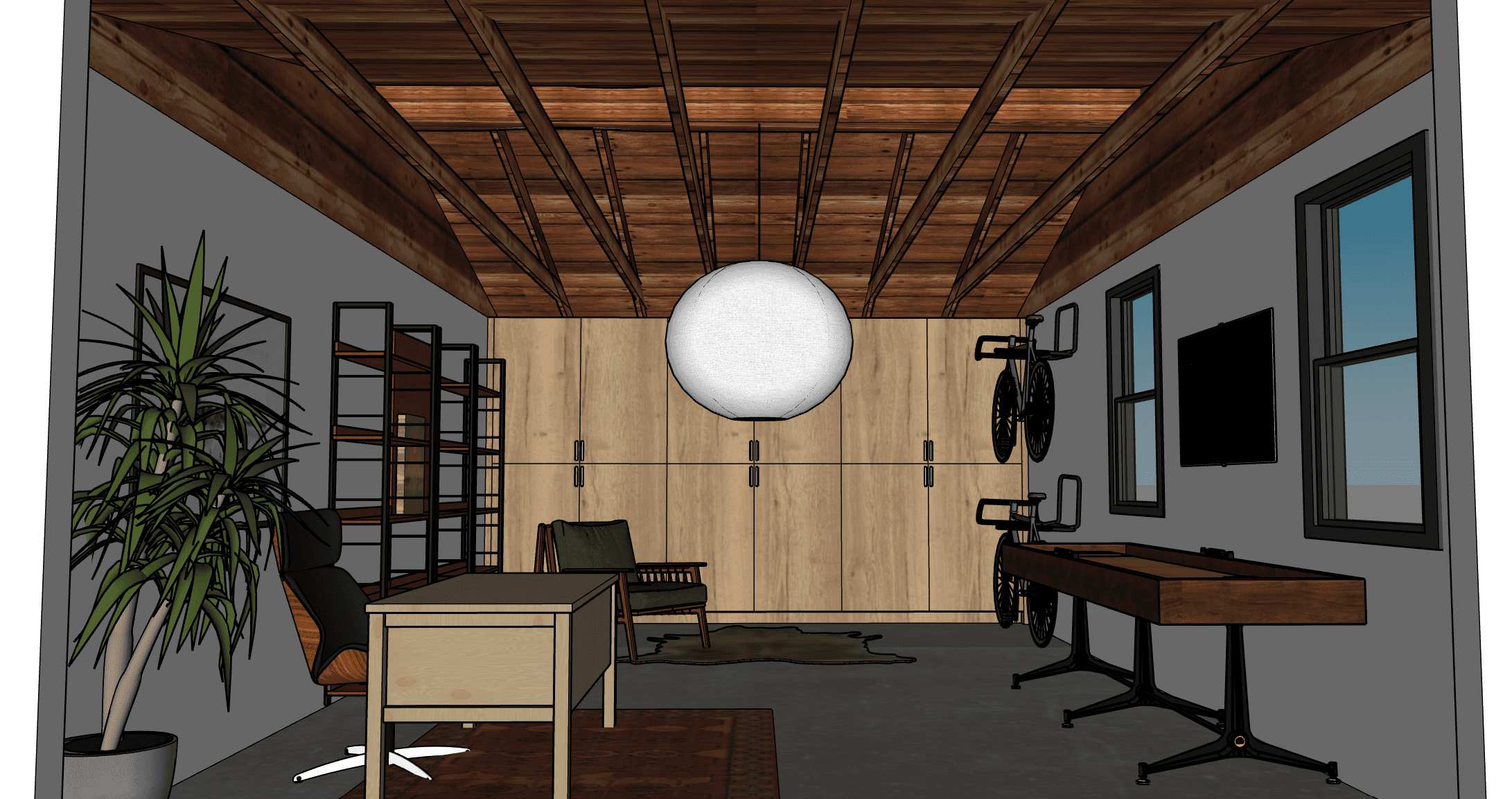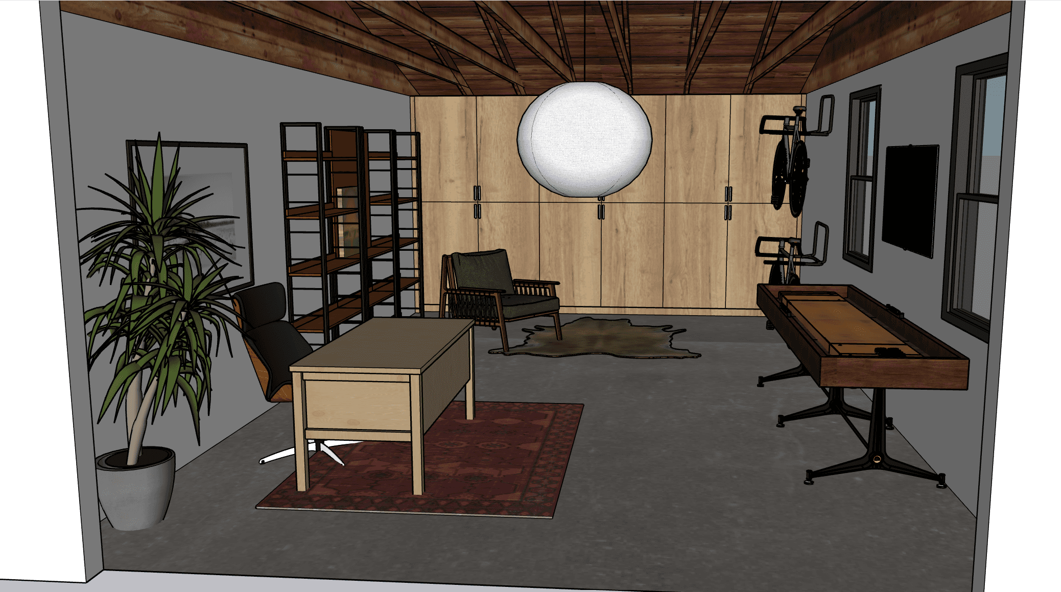 This project explored two design pathways for creating a dedicated home office within a multi-bedroom apartment: converting the existing garage or repurposing one of the spare bedrooms. After conducting a spatial analysis and evaluating client priorities—such as privacy, light, storage, and long-term functionality—the garage was selected as the optimal location for the office.
